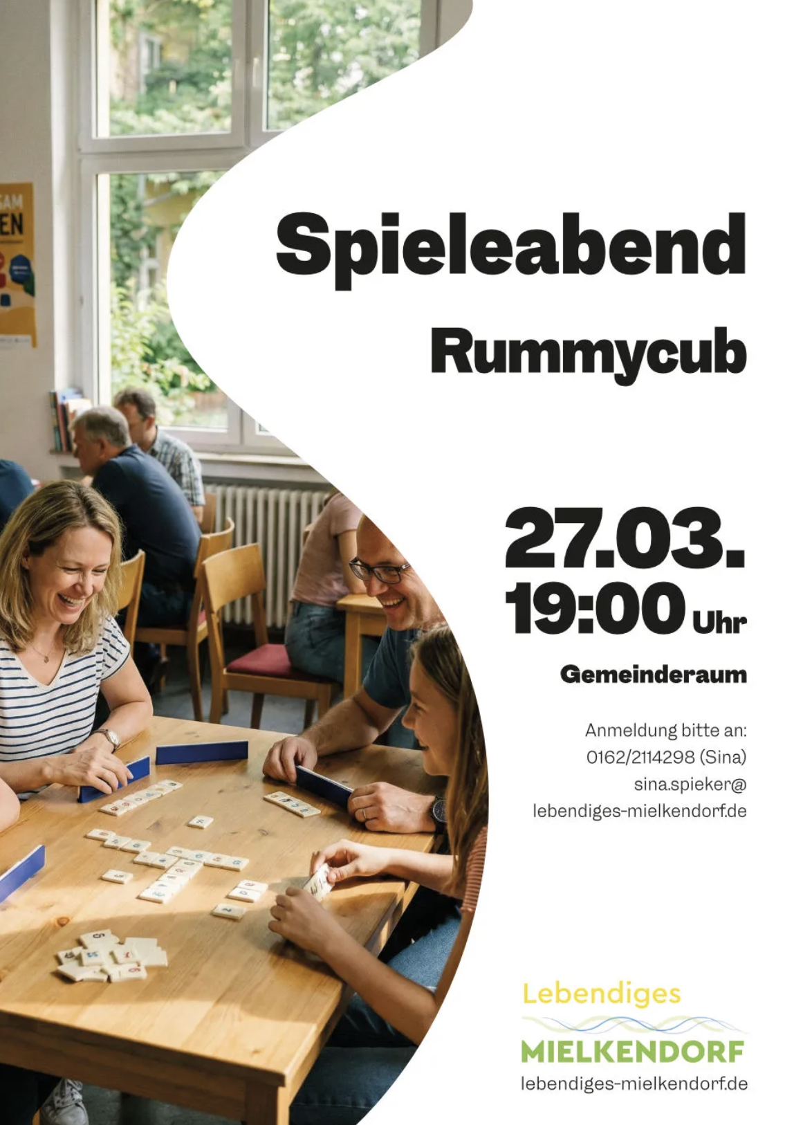 Am 27. März um 19 Uhr treffen sich alle Spieleliebhaber:innen und Strateg:innen, um sich in spannenden Runden Rummycub zu messen. Natürlich soll auch diesmal wieder für das leibliche Wohl gesorgt sein. Der Verein „Lebendiges Mielkendorf e.V.“ stellt eine kleine Auswahl an Snacks und Getränken bereit, die gegen eine kleine Spende erworben werden können. Die Teilnahmegebühr […]